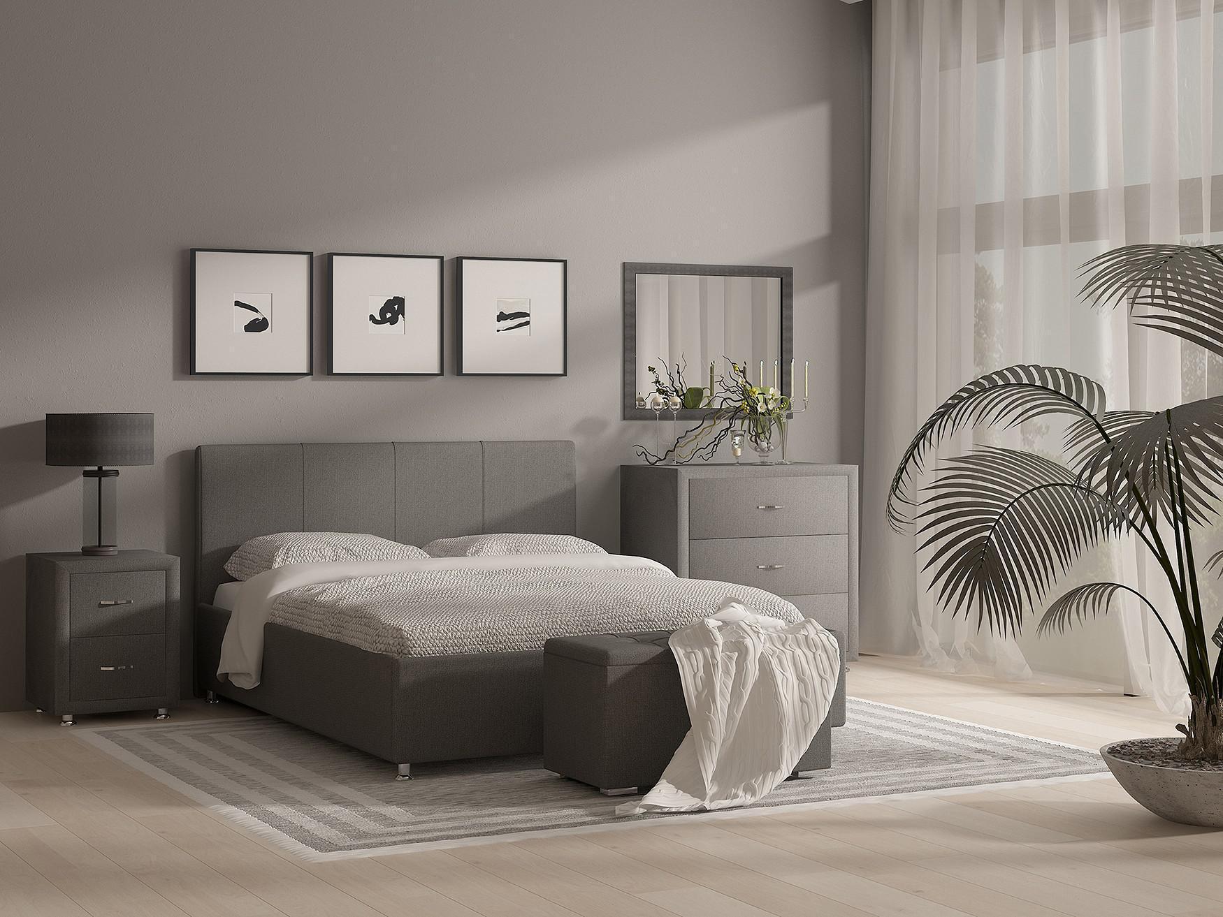 Элегантная интерьерная кровать с изголовьем украшенным декоративной вертикальной строчкой. В комплект кровати входит кроватное основание. Каркас основания выполнен из металла, ламели - из берёзы.