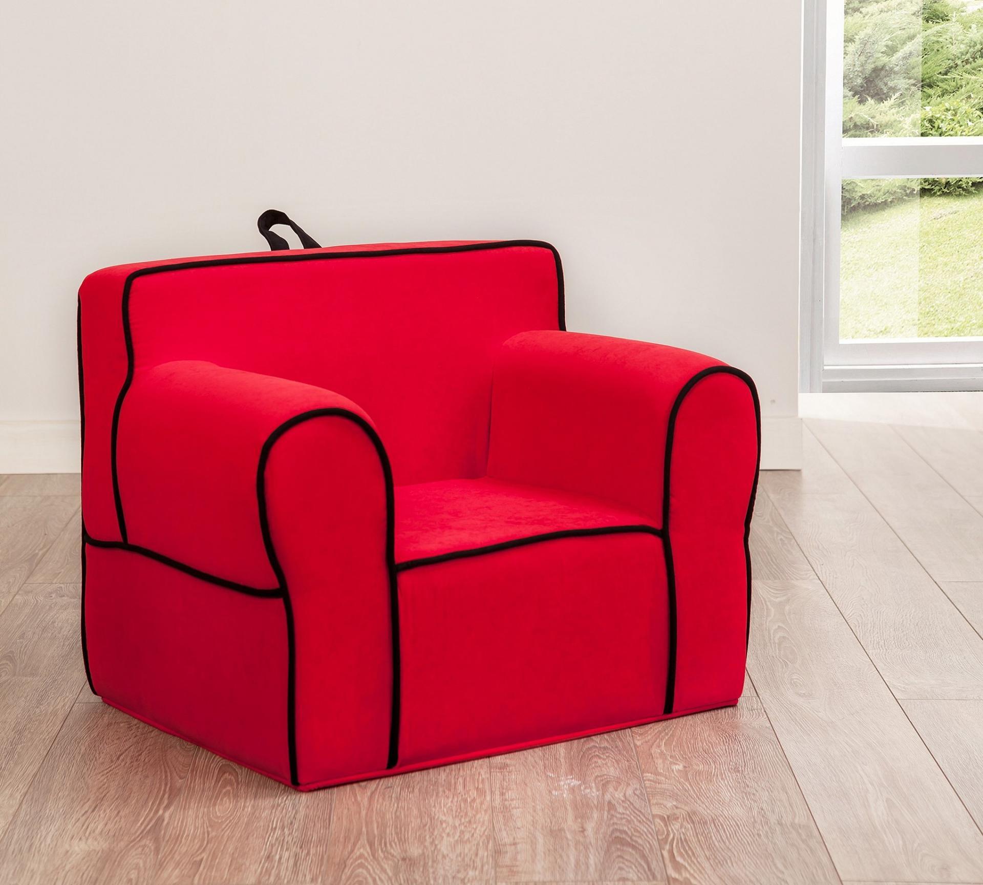 Пуфик изготовлен в форме кресла: имеет сиденье, спинку, боковые подлокотники. Поэтому сидеть на нем удобно как самым маленьким, так и детям постарше. Спина находится в удобном положении, осанка сохраняется правильной. Пуфик не имеет тяжелой конструкции, п