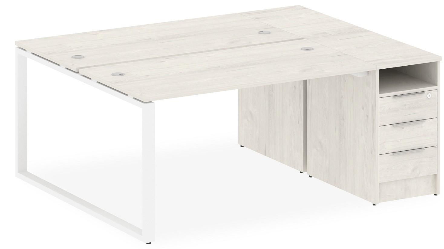 • 3 ящика. Для изготовления корпуса был выбран ЛДСП Е1, металл в оттенке белый, дуб наварра, завершает дизайн матовый верхний слой, гармонично перекликающийся со столешницей. Купить данную модель вы можете по привлекательной цене, равной 45478 руб.