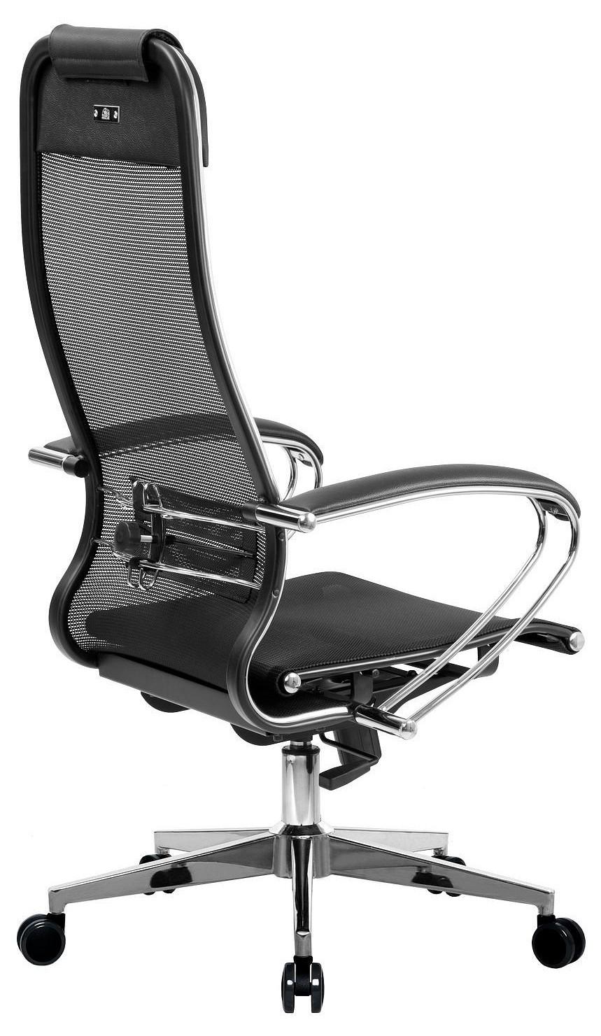 Подлокотники - стальные классические, покрытые зеркальным хромом. Обивка накладок - экокожа.