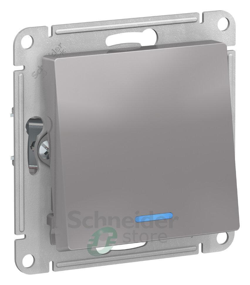 Механизм Schneider Electric AtlasDesign (цвет алюминий) переключателя 1-клавишного с подсветкой подходит для сетей 250 В, на ток 10 А.