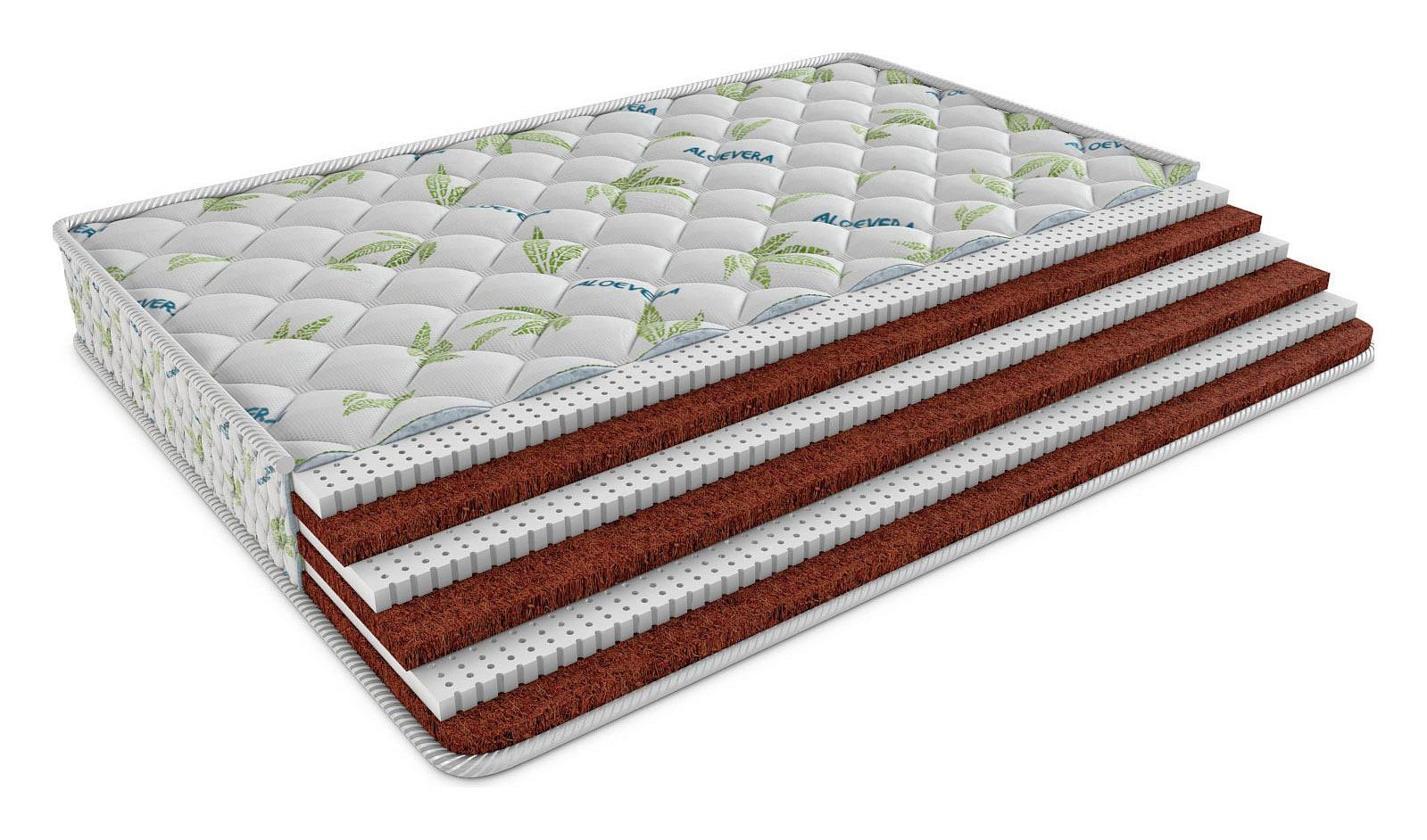 Ортопедический матрас состоит из шести чередующихся слоёв натурального латекса и натуральной кокосовой койры по 3см каждого.
