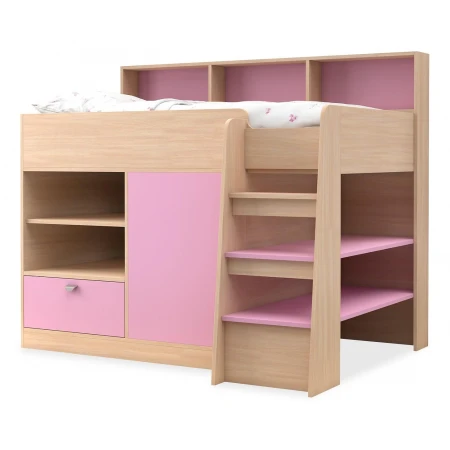 Ваш ребенок подрос и пришла пора обновить мебель в детской комнате? Набор для детской Golden Kids 9 FSN_GK09-KM-FR – отличное решение, которое придется по душе не только вам, но и будущему маленькому хозяину или хозяйке. Изделие изготовлено известным брендом Golden Kids (Россия) и входит в серию «Golden Kids 9». Эффектный матовый корпус оттенка дуб молочный, розовый смотрится изысканно и изящно, гармонично дополняя фасад, изготовленный из практичного и оптимального для детской материала (ЛДСП Е1). Перед приобретением новой кровати советуем тщательно замерить свободную площадь в комнате, чтобы кровать оптимально подошла по размерам (1382 мм в высоту, 1669 мм в ширину и (уточните актуальную информацию у нашего консультанта) мм в длину), а также подобрать матрас 1600x800 мм мм. В комплект входит лестница,