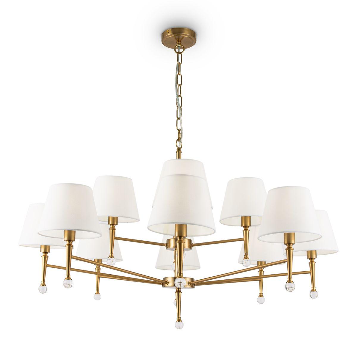 Великолепная модель FR5190PL-12BS1 от немецкой компании Freya относится к коллекции Rosemary и отлично подойдет для установки на потолок в гостиной, оформленной в американском стиле. Подвесная люстра Freya Rosemary FR5190PL-12BS1 с плафонами-конусами осветит помещение площадью 32 кв. м. Производитель Freya рекомендует использовать для устройства лампы накаливания с цоколем E14 и мощностью 40 W. Прибор произведен с использованием материалов: текстиль, металл и ткань и может использоваться для натяжного потолка. Основным цветом товара является белый и латунный. Подвесная люстра FR5190PL-12BS1 продается по цене 31990 руб. Торопитесь сделать заказ в интернет-магазине SvetONe.