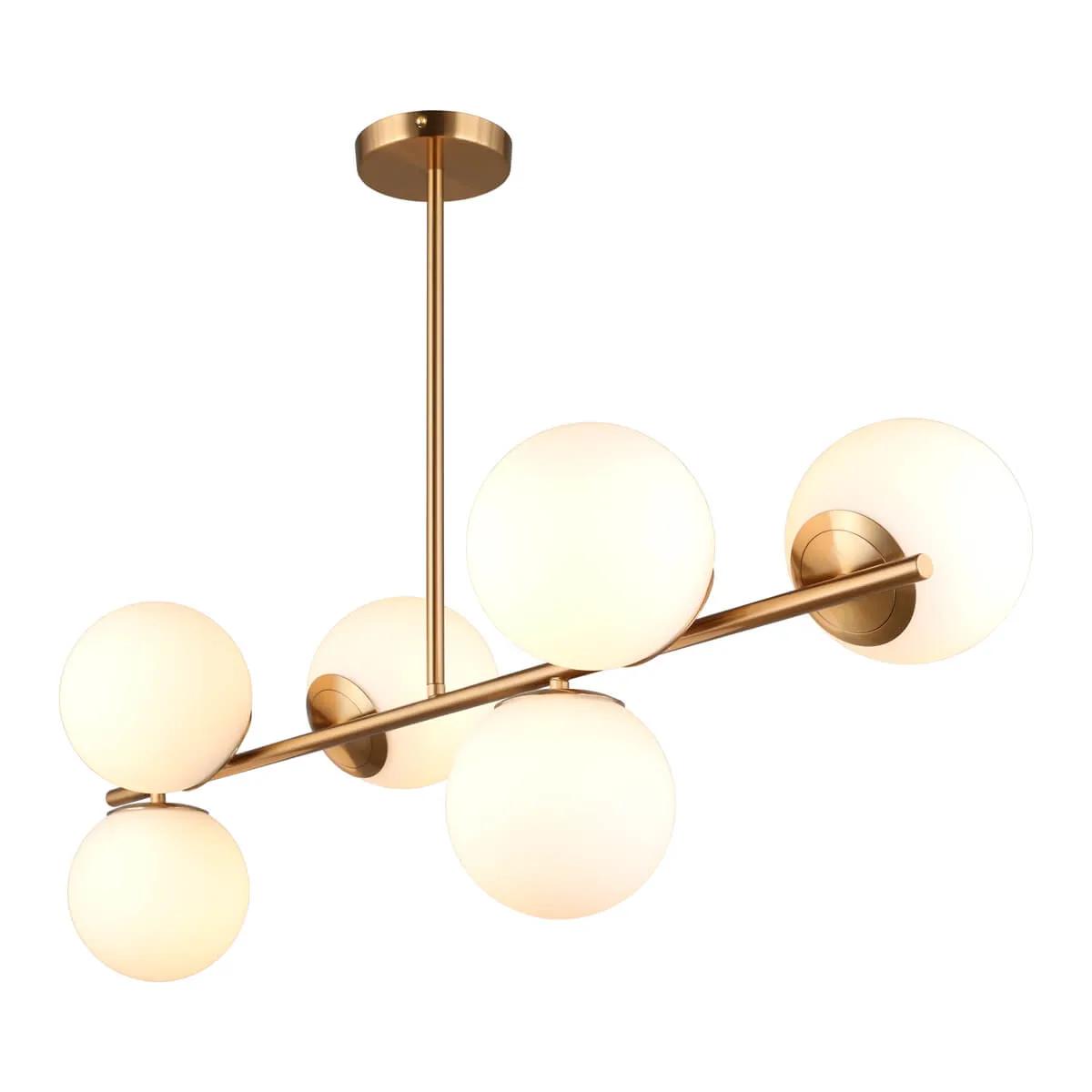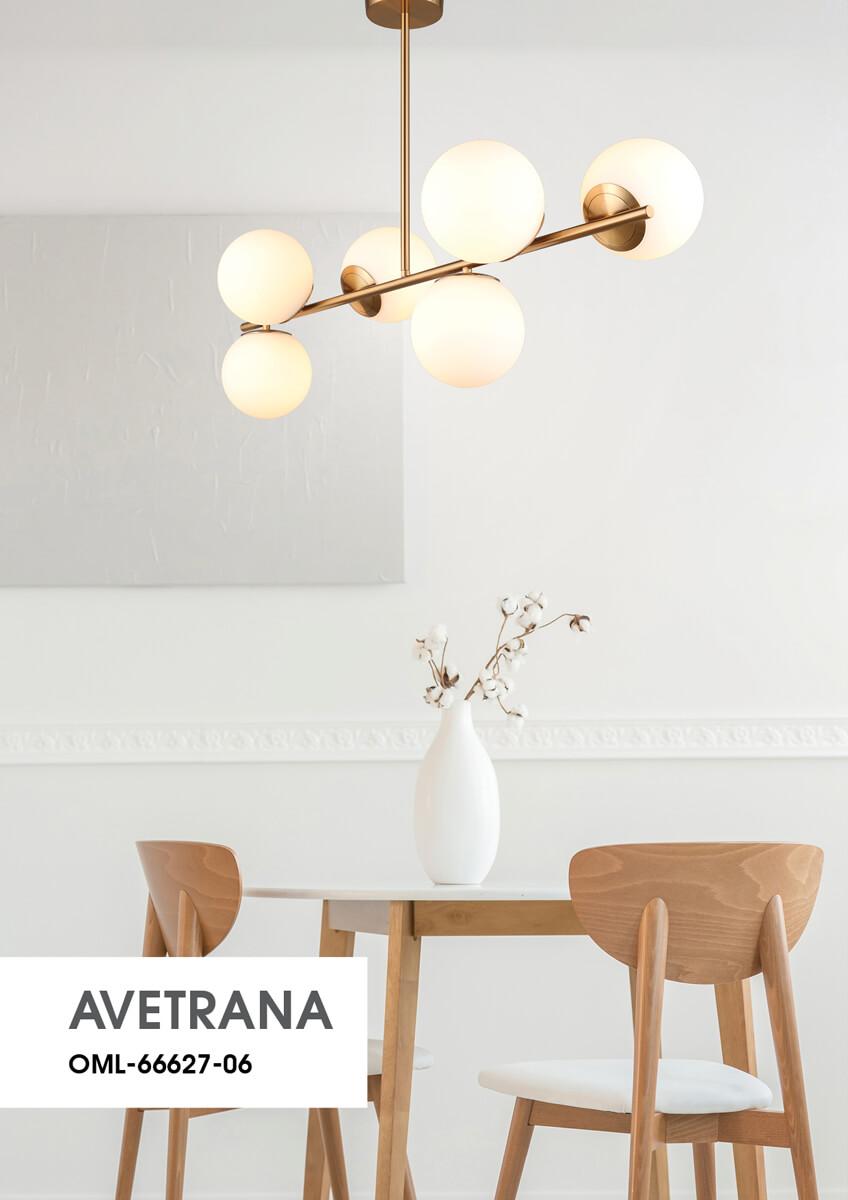 Элегантная модель OML-66627-06 от китайской компании Omnilux относится к коллекции Avetrana и отлично подойдет для установки на потолок кухни, оформленной в стиле модерн. Потолочная люстра Omnilux Avetrana OML-66627-06 с плафонами в виде шаров осветит помещение площадью 15 кв. м. Производитель Omnilux рекомендует использовать для устройства светодиодные лампы с цоколем E27 и мощностью 5 W. Прибор произведен с использованием материалов: стекло и металл и может использоваться для натяжного потолка. Основным цветом товара является белый и бронзовый. Потолочная люстра OML-66627-06 продается по цене 18880 руб. Торопитесь сделать заказ в интернет-магазине SvetONe.