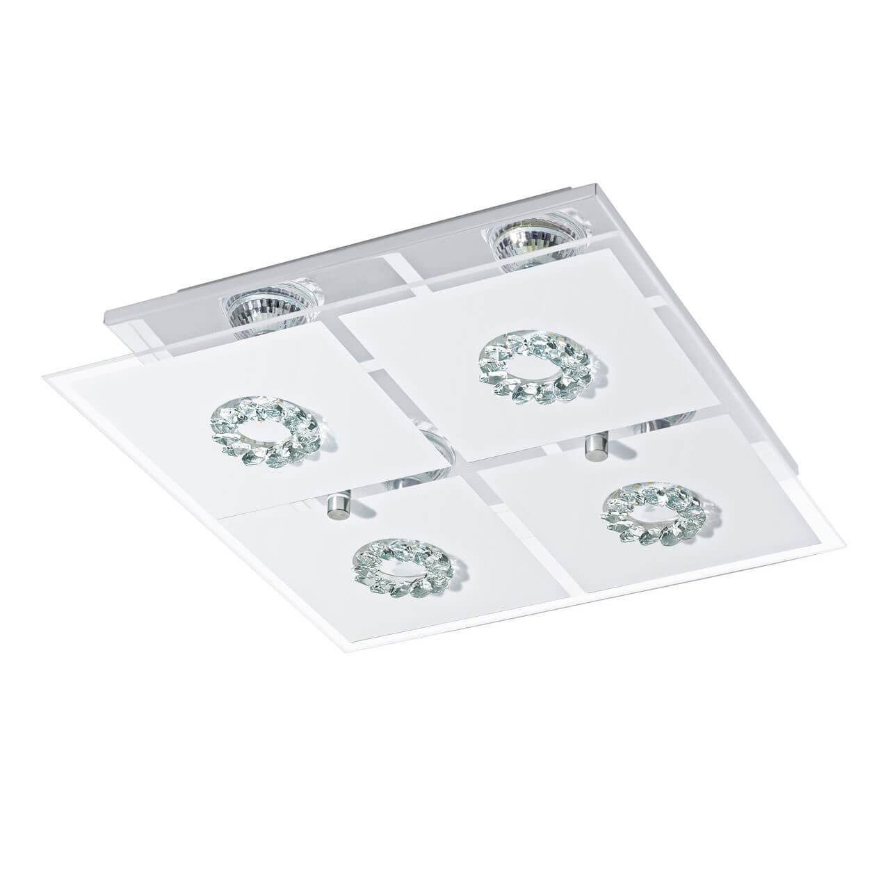 Поразительная модель 93783 от австрийской компании Eglo относится к коллекции Roncato и отлично подойдет для установки на потолок спальни, оформленной в современном стиле. Потолочный светильник Eglo Roncato 93783 с квадратными плафонами осветит помещение площадью 6 кв. м. Производитель Eglo рекомендует использовать для устройства светодиодные лампы с цоколем GU10 и мощностью 3 W. Прибор произведен с использованием материалов: стекло, металл и хрусталь и может использоваться для натяжного потолка. В комплект поставки входят также лампы. Основным цветом товара является белый и хромовый. Торопитесь сделать заказ в интернет-магазине SvetONe.