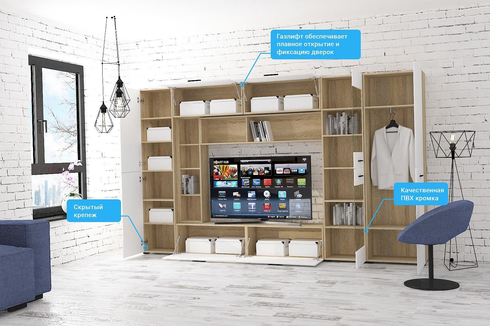 Гостиная модульная - при монтаже можно собрать гостиную зеркально.