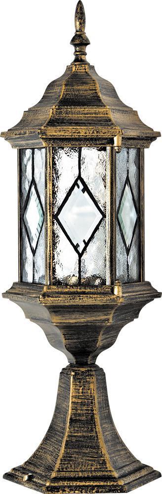 Светильник садово-парковый, серии «Сорренто» (НТУ) FERON PL124 1*60W, E27, 230V, IP44, цвет черное золото, 6-и гранник, на постамент, 165*165*450мм