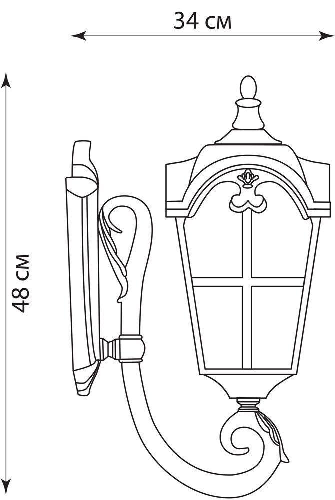 Светильник садово-парковый, серии «Кастелло» (НБУ) FERON PL5102 1*100W, E27, 230V, IP44, цвет черное золото, 4-х гранник, на стену вверх, 230*340*640мм