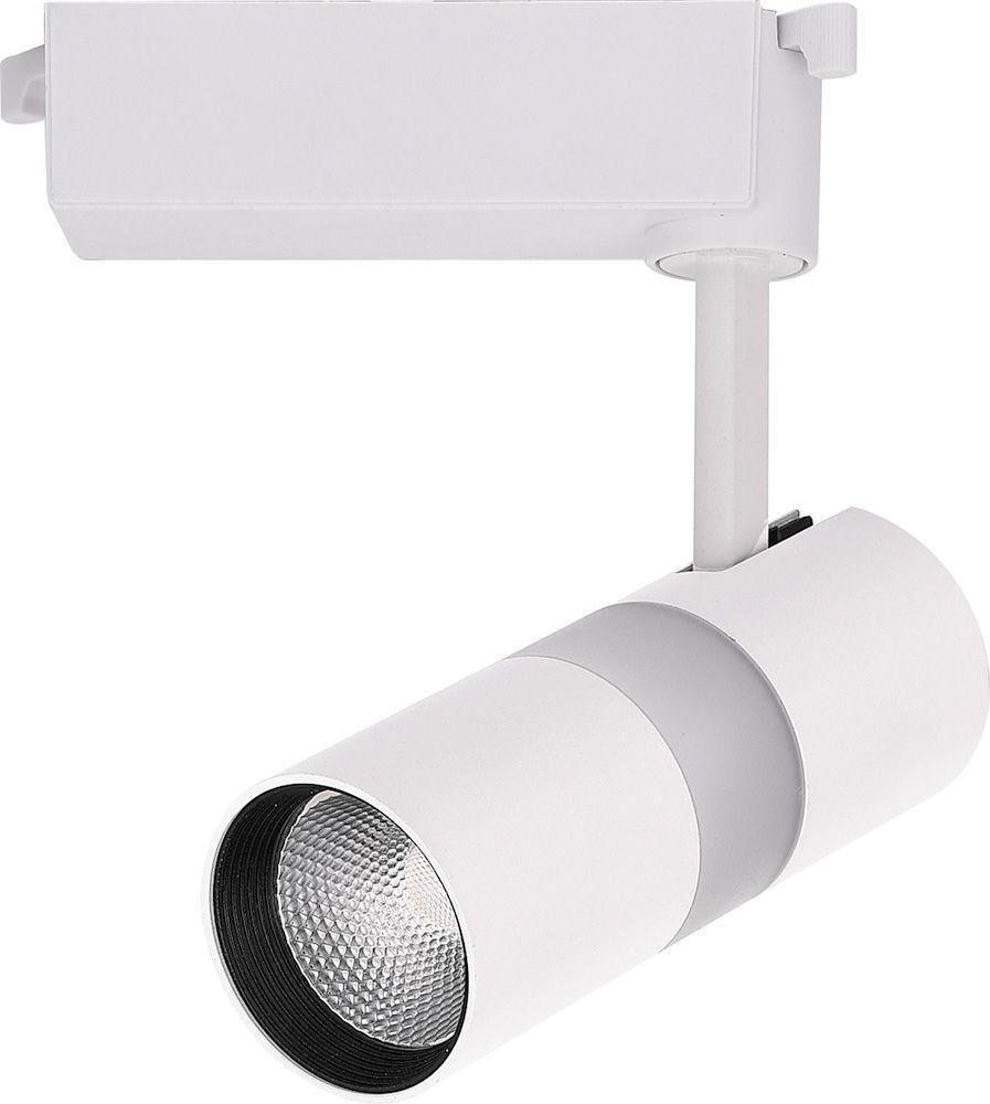 Светильник трековый светодиодный на шинопровод, однофазный (ДПО) FERON AL108, 12+5W, 4000К (белый), + подсветка синяя, 230V, 1080Lm, угол освещения 35°, цвет белый, корпус алюминий, рассеиватель поликарбонат, вращение →350°/↓90°, 165*70*175 мм