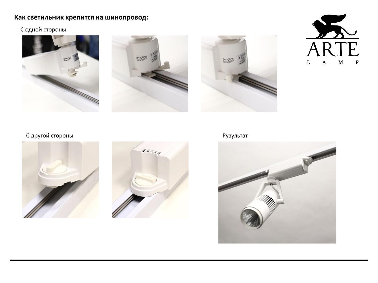 Трековый светильник свободного перемещения (на шину) arte lamp a6107pl-1wh track lights led 1х7w 220v ip21