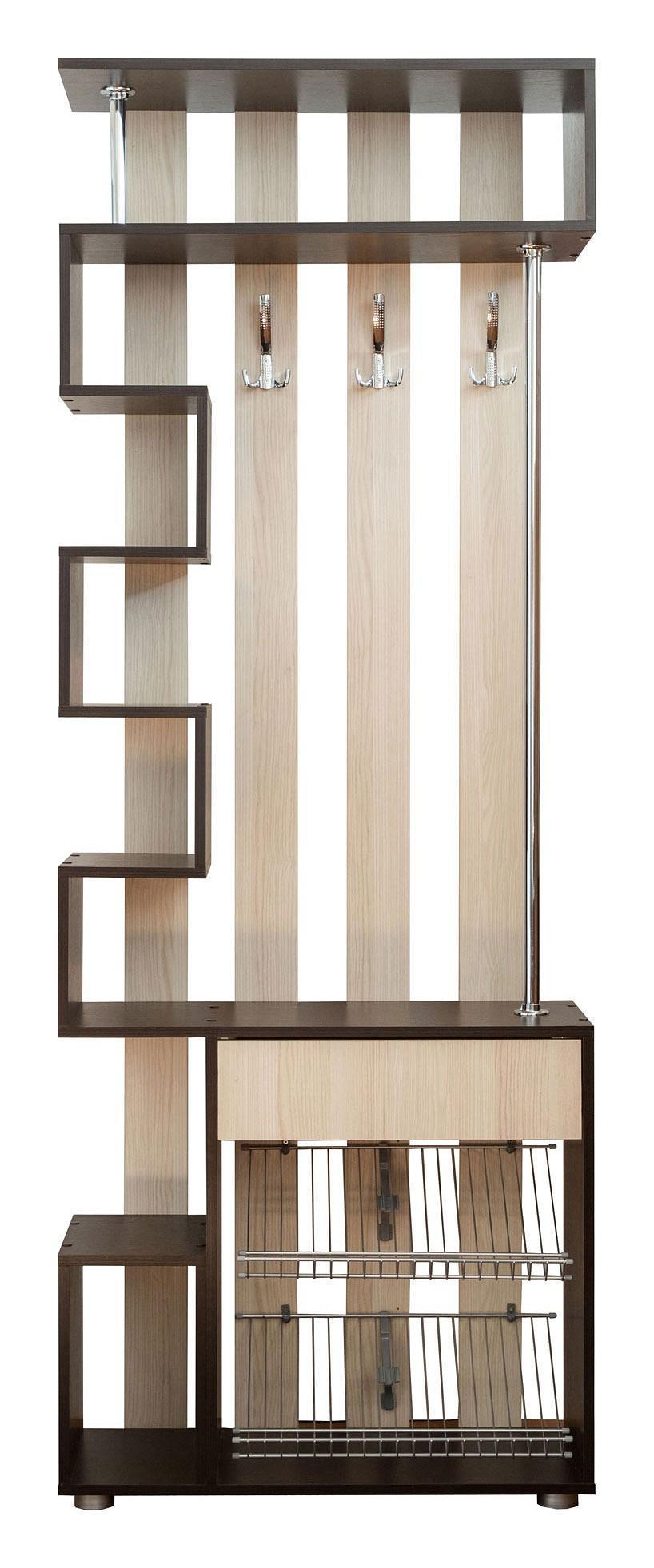 Компоненты, входящие в комплект 1 ящик, 2 полки для обуви,3 крючка, 6 полок