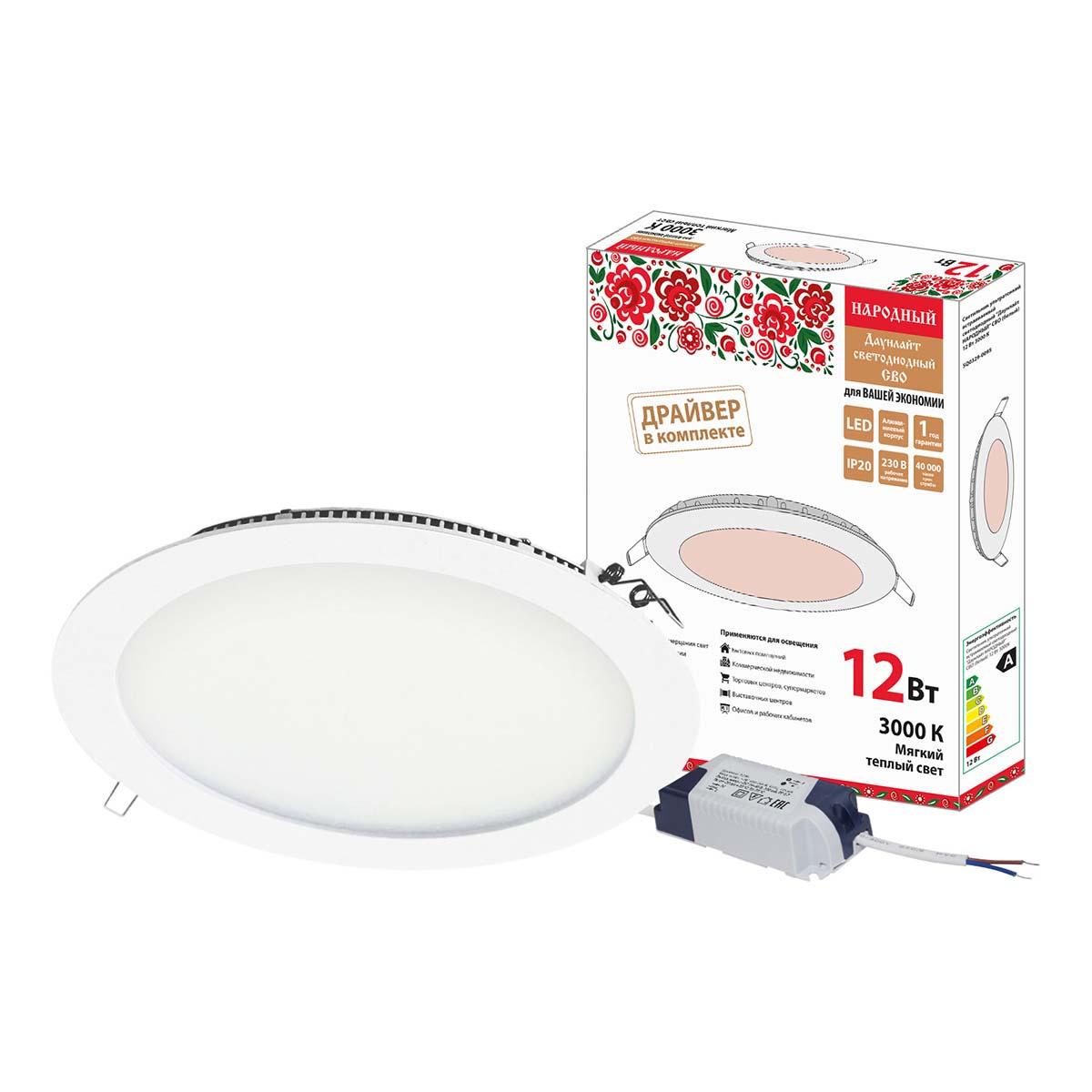 Встраиваемый светодиодный светильник Даунлайт Народный СВО SQ0329-0095
